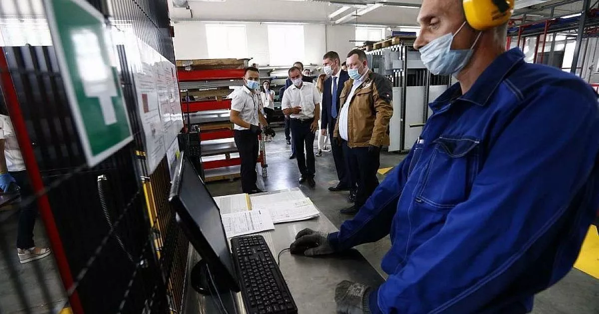 Максим Решетников и Вениамин Кондратьев осмотрели производственные цеха, пообщались с рабочими – сейчас здесь трудится порядка 150 человек.
