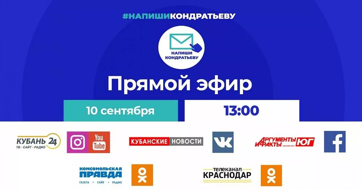Проект #НапишиКондратьеву создан главными редакторами и директорами пяти ведущих СМИ Краснодарского края. Это «Кубань24», «Кубанские новости», «Комсомольская правда», «Аргументы и факты» и телекомпания «Краснодар». Руководители двух из них — Евгений Хомутов и Максим Жмутский («Кубанские новости» и телекомпания «Краснодар») — как раз проведут стрим по проекту.