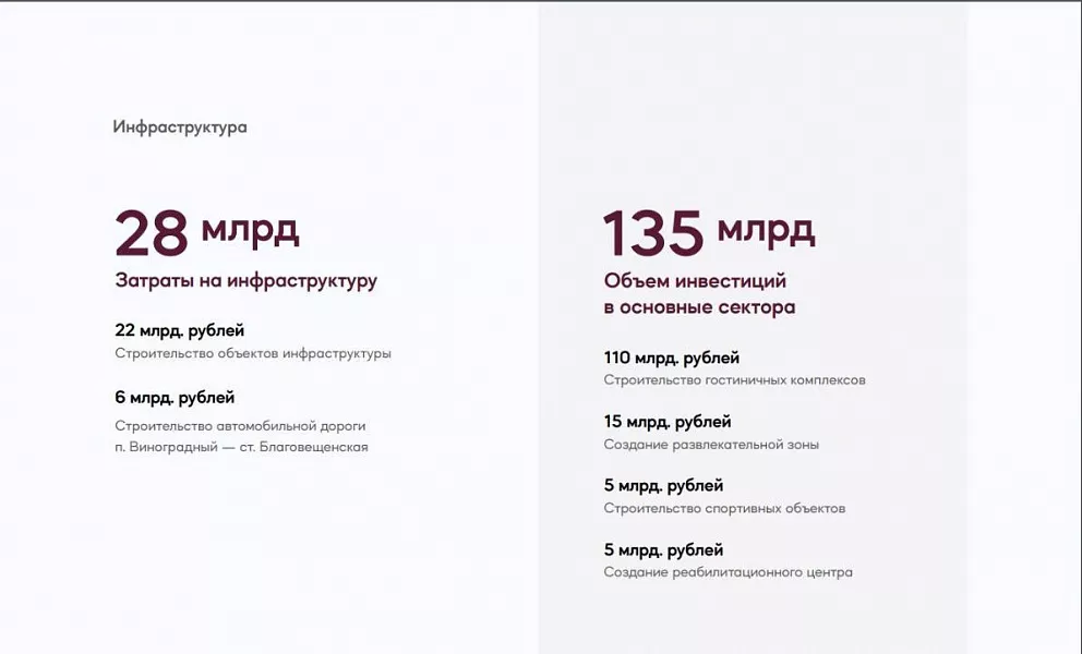 Глава курорта Васили Швец добавил, что появление нового туристско-рекреационного кластера даст 25 тыс. новых рабочих мест.