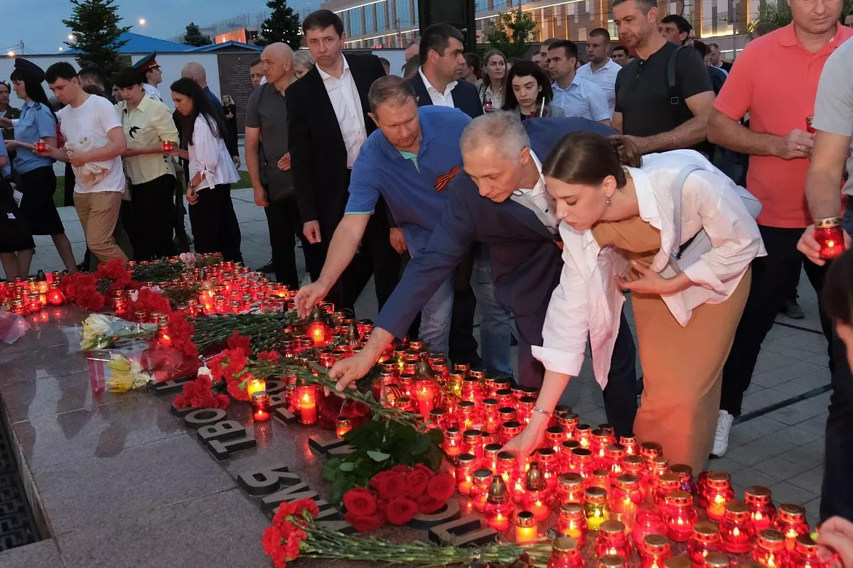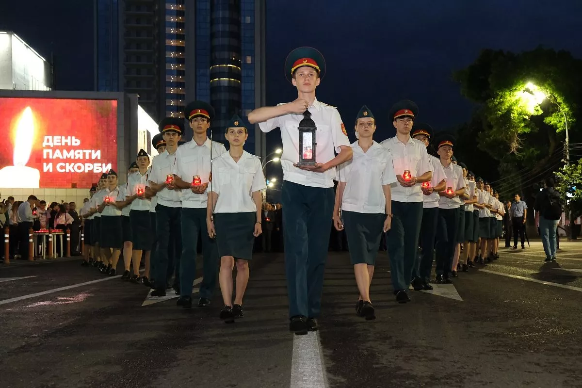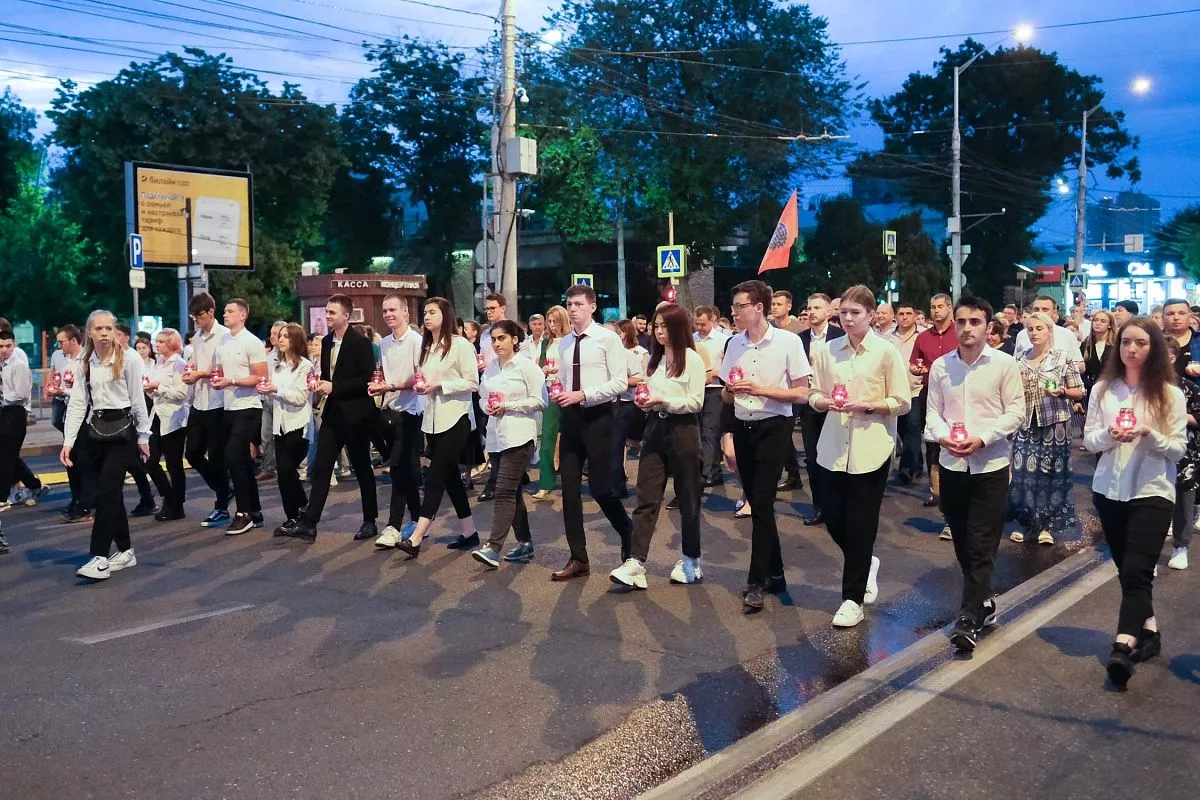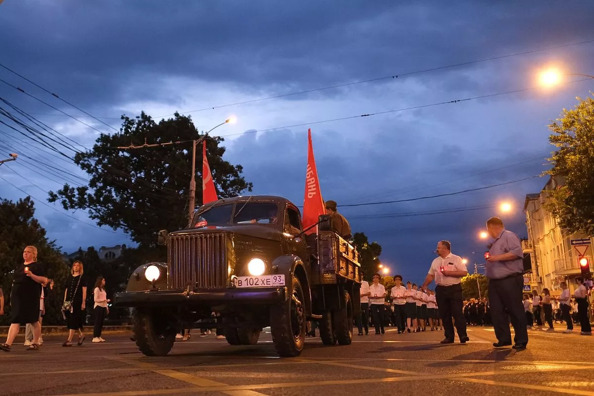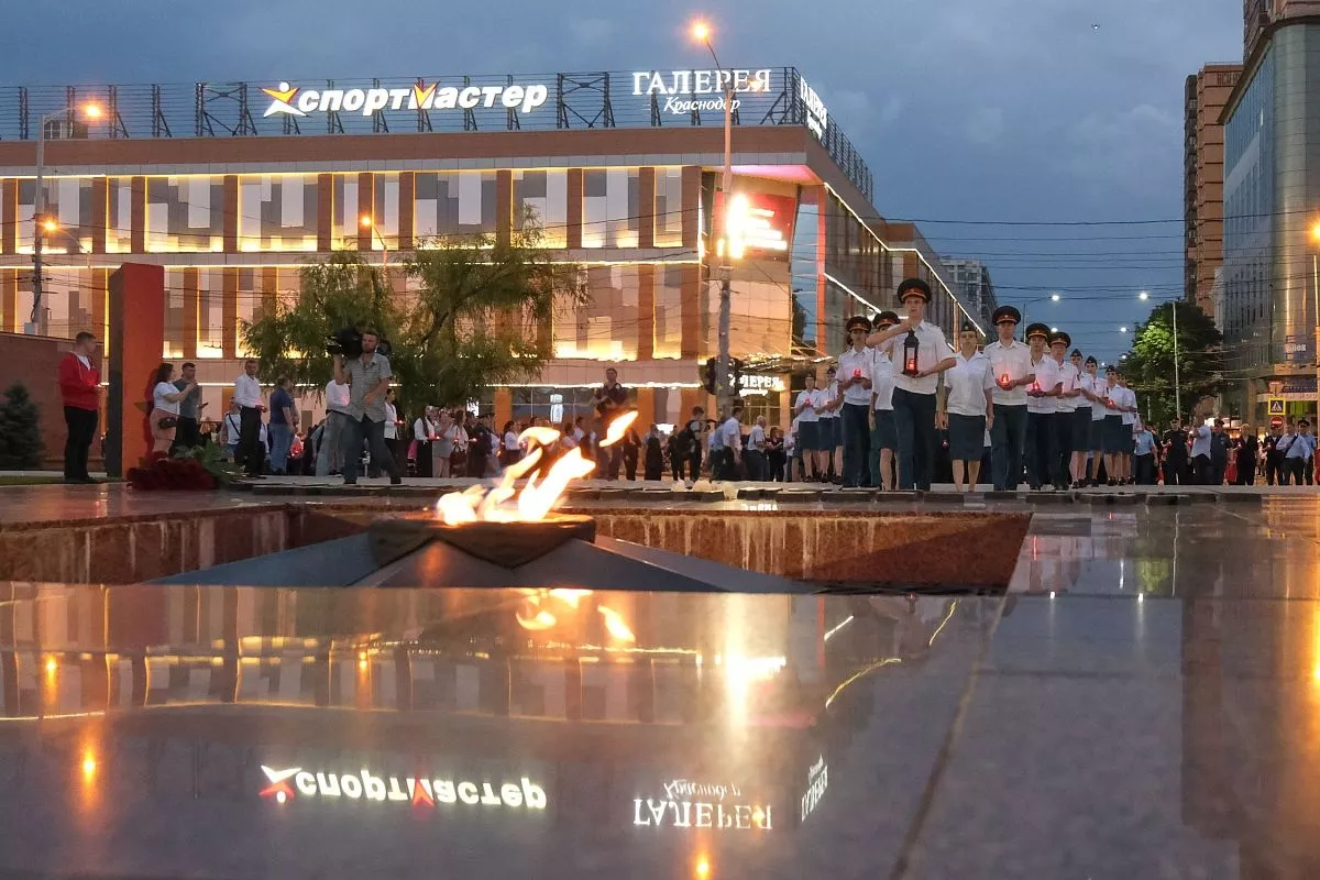 Акция началась в 04.00 на Главной городской площади Краснодара. Участники с зажженными свечами в руках под звук симфонического оркестра прошли колонной по улице Красной к Вечному огню. У мемориала собравшиеся расставили свечи и почтили минутой молчания память погибших в годы Великой Отечественной войны, сообщает пресс-служба краевой администрации.