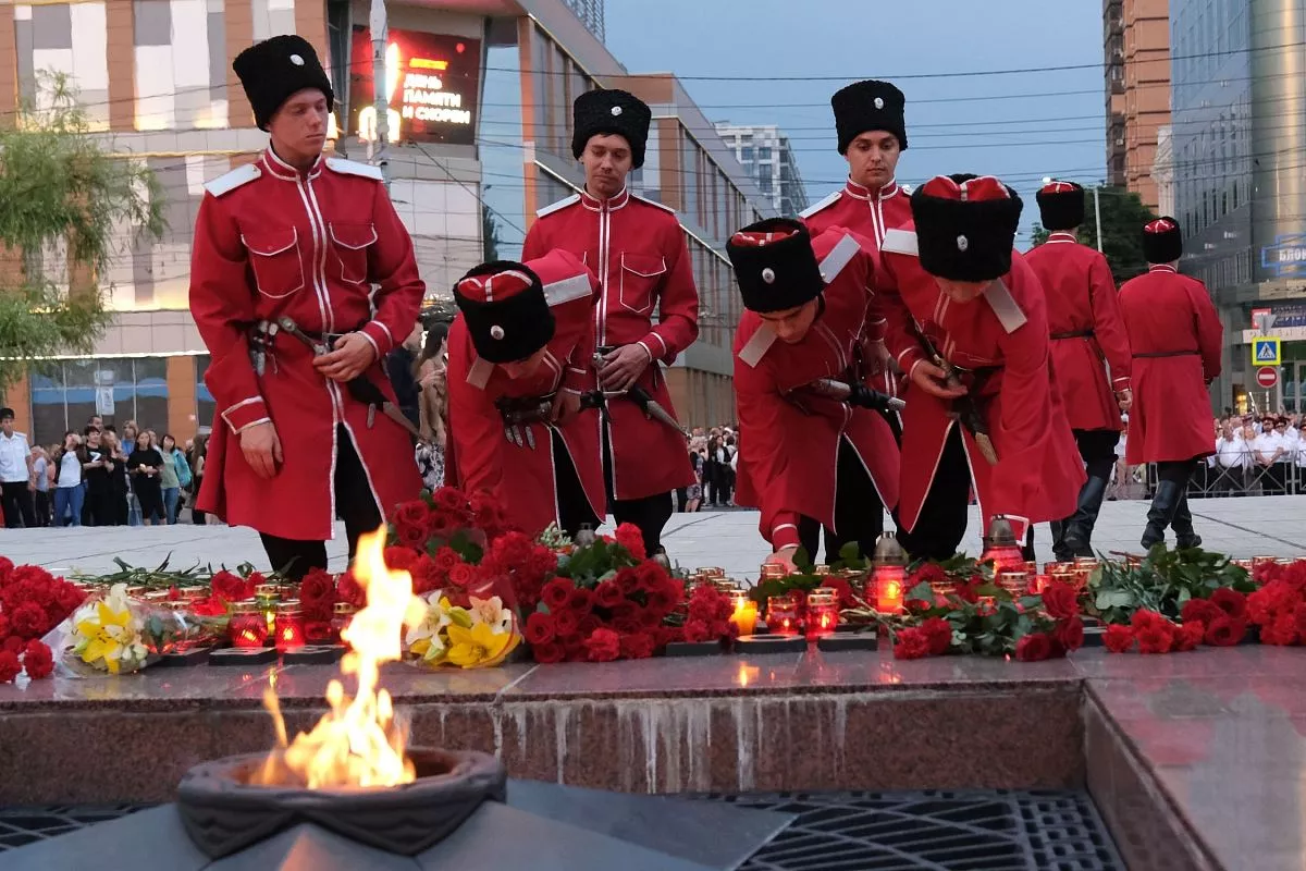 22 июня по всему региону зажгут 17 Огней Памяти, пройдут торжественные церемонии возложения цветов, венков и гирлянд к памятникам, посвященным событиям, героям и жертвам Великой Отечественной войны. Также сегодня в 12.15 состоится Всекубанская минута молчания. На это время остановят движение транспорта и работу всех предприятий, учреждений и организаций.