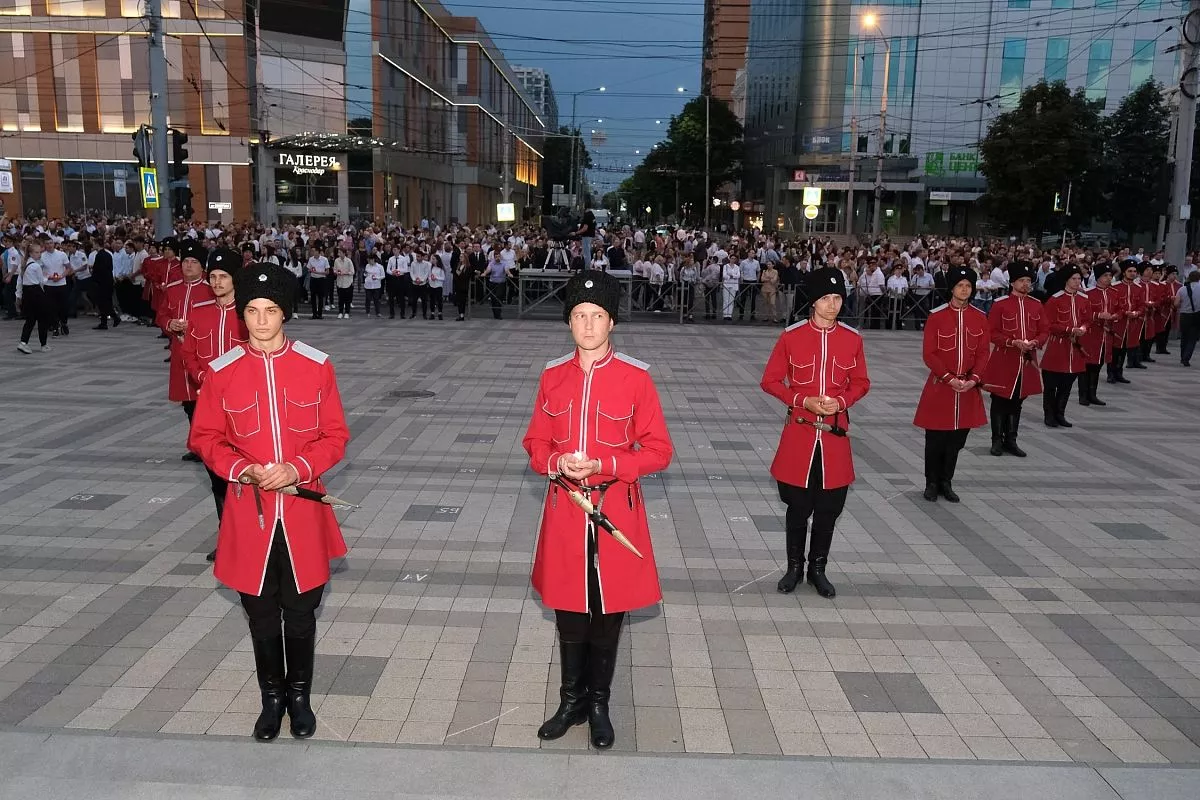 Вместе с губернатором в церемонии приняли участие спикер Заксобрания Кубани Юрий Бурлачко, митрополит Екатеринодарский и Кубанский Григорий, начальник управления ФСБ России по Краснодарскому краю Сергей Захарихин, прокурор Кубани Сергей Табельский, руководитель СУ СК РФ в крае Андрей Маслов, начальник ГУ Росгвардии в регионе Георгий Медоев, глава ГУ МВД России по Краснодарскому краю Владимир Андреев, врио главного федерального инспектора по краю Евгений Гулиев, вице-губернаторы, представители общественных организаций, казачества и жители краевой столицы.