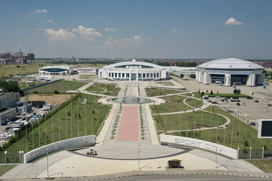 На завершающем этапе строительства рабочие благоустроили и озеленили территорию вокруг дворца спорта, оборудовали фонтан и парковую зону, сообщает пресс-служба администрации Краснодарского края.