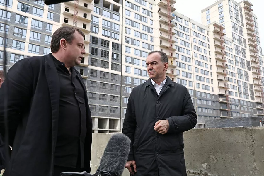 В объезде также приняли участие вице-губернатор Сергей Власов, мэр Краснодара Евгений Наумов, глава краевого департамента по надзору в строительной сфере Максим Карпенко, представители инициативных групп дольщиков.