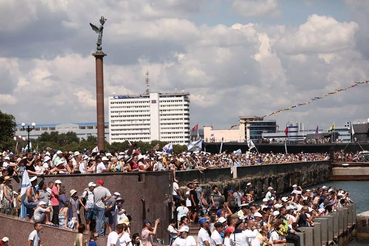 По Форумной площади торжественным маршем прошли парадные расчеты военно-морских частей Новороссийского гарнизона. В акватории Цемесской бухты провели военно-спортивный праздник. Надводные корабли, подводные лодки, боевые катера, суда обеспечения и техника береговых войск показали возможности по уничтожению минных заграждений противника, морской бой, высадку десанта, захват плацдарма, освобождение судна и спасение экипажа.