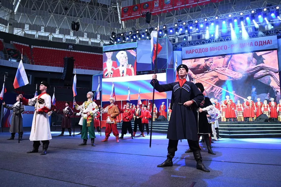 Перед началом мероприятия гостей встречали представители различных национальностей, проживающих в Краснодарском крае. На концерте выступили артисты Кубанского казачьего хора, филармонии им. Г.Ф. Пономаренко, ансамбли «Кубанская казачья вольница», «Анданте» и «Гильце», творческие коллективы со всего региона.