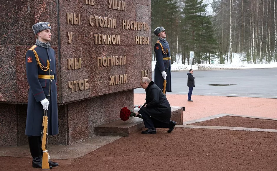 Президент РФ Владимир Путин в 80-ю годовщину снятия блокады Ленинграда возложил цветы к монументу «Рубежный камень» на «Невском пятачке».