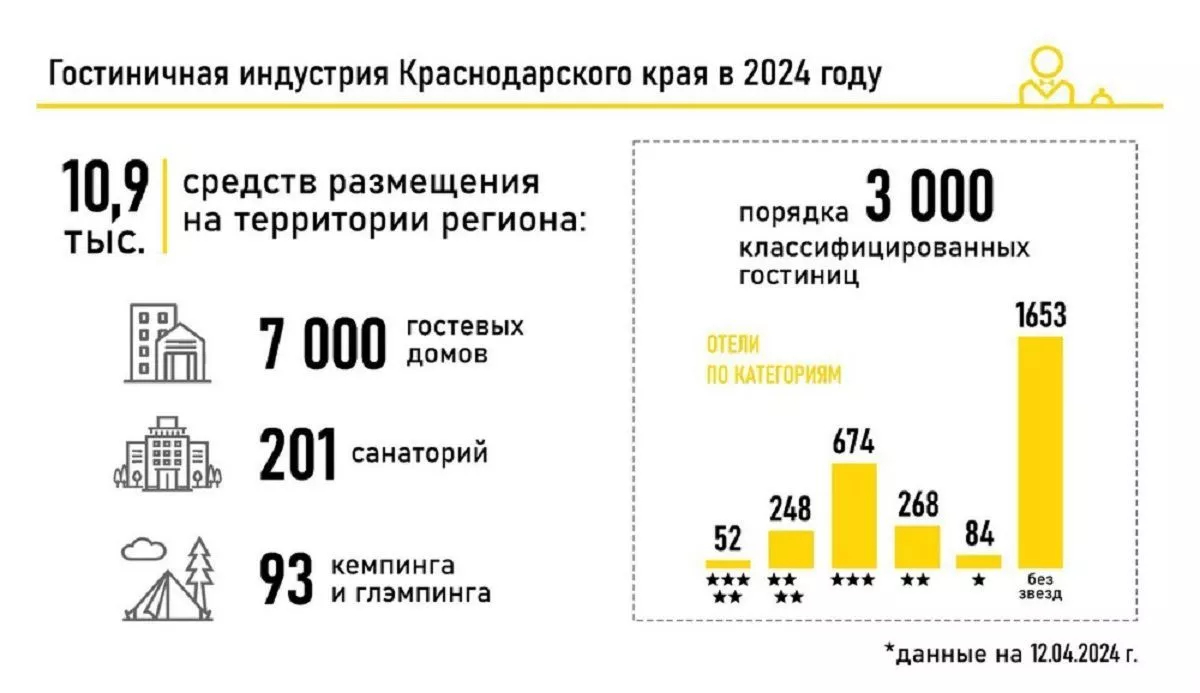 Губернатор добавил, что в настоящее время на Кубани работает около 11 тысяч отелей и гостиниц. Жителей и гостей региона ждут санатории, кемпинги, глэмпинги, гостевые дома.