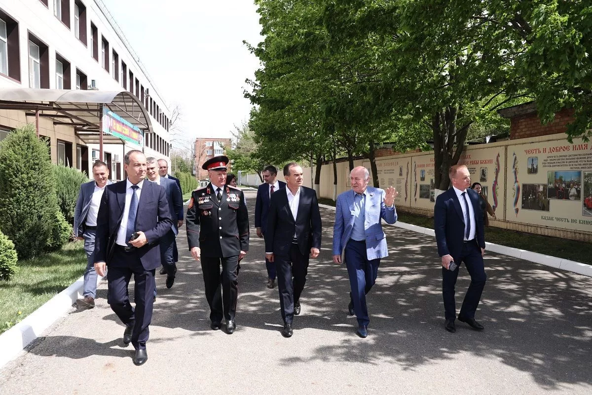 Глава региона осмотрел общеобразовательное учреждение вместе с зампредседателя комитета Госдумы РФ по делам национальностей Николаем Долудой, председателем ЗСК Юрием Бурлачко.