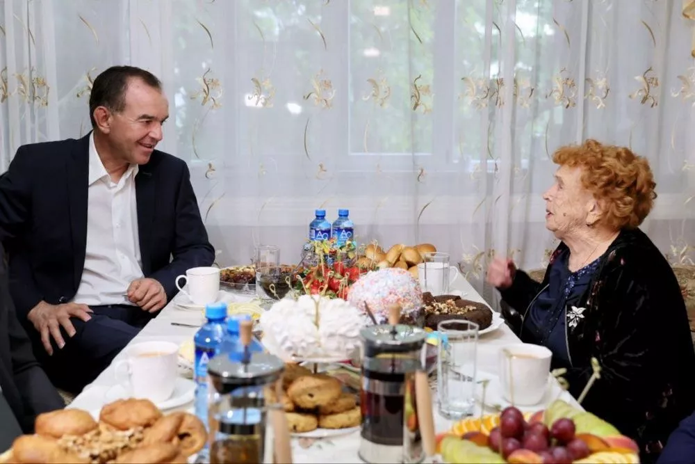 Накануне празднования Дня Победы губернатор навестил 96-летнюю участницу войны, проживающую в Кропоткине.