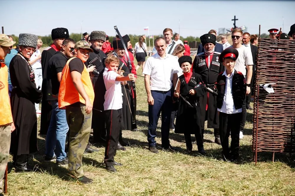 Губернатор осмотрел работу организованных тематических площадок, выставку оружия и казачьего быта. Гостям представили показательные выступления – инсталляцию подвига сотни атамана Гречишкина, организовали работу полевой кухни, провели казачьи игры, мастер-классы по фланкировке, рубке шашкой и метанию ножей, сообщает пресс-служба краевой администрации.