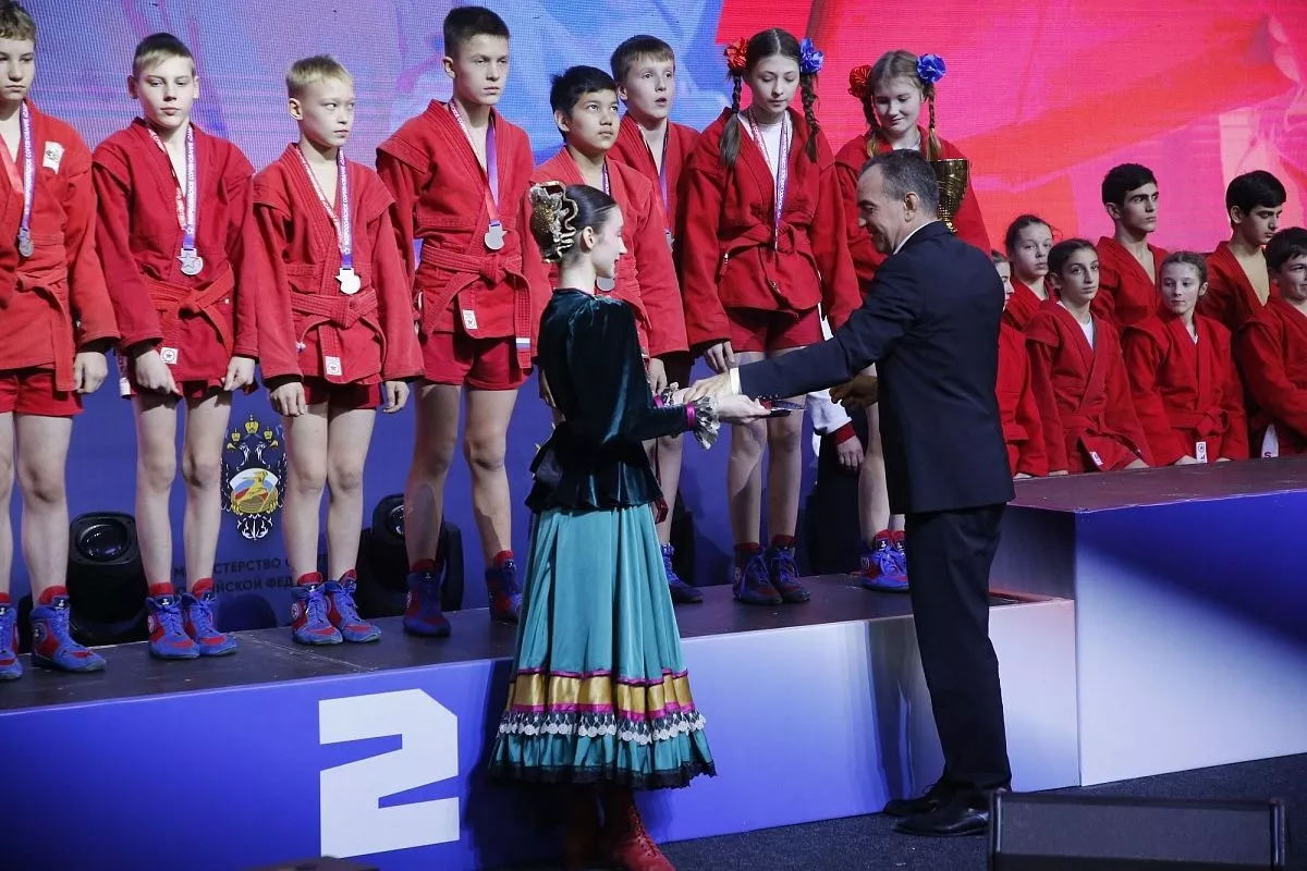 – Более 800 учебных заведений участвуют в проекте «Самбо в школу». В 27 муниципальных образованиях уже работают центры единоборств, где приоритет отдан самбо и дзюдо. Создана краевая школа самбо, которая объединит все эти комплексы. Мы формируем полноценную систему подготовки начинающих самбистов. Не все из них дальше пойдут в большой спорт, но все вырастут патриотами своей Родины. Потому что это тот вид спорта, который закаляет характер, демонстрирует волю к победе, физическую силу и силу духа, учит уважать соперника, – сказал Вениамин Кондратьев, приветствуя юных спортсменов.
