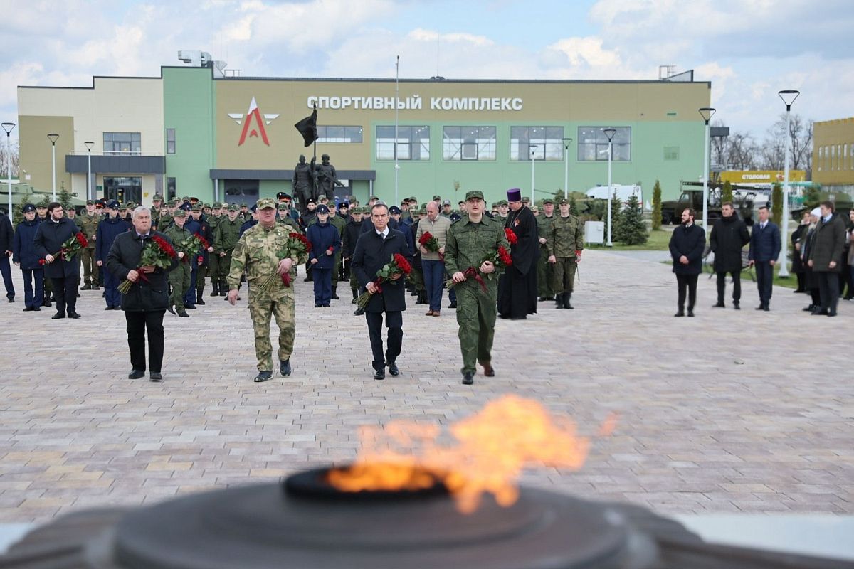 Перед началом пленарного заседания губернатор Кубани Вениамин Кондратьев совместно с руководителем управления общественно-политической работы СК РФ Сергеем Петровым и руководителем следственного управления СК РФ по Краснодарскому краю Андреем Масловым возложил цветы к Вечному огню, почтил минутой молчания память воинов, погибших во время Великой Отечественной войны.