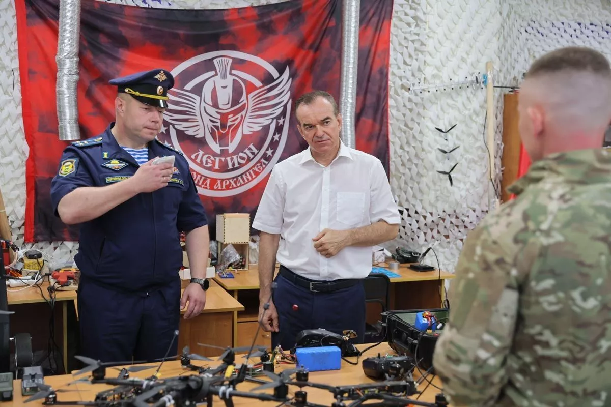 Во время визита в одну из частей дивизии в Новороссийске губернатору показали учебный корпус и несколько опытных образцов вооружения.
