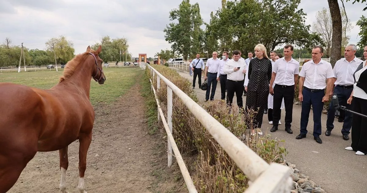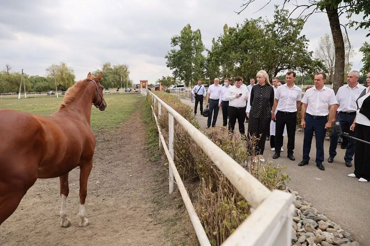 Одной из точек рабочей поездки главы региона в муниципалитет стал учхоз Курганинского аграрно-технологического техникума в поселке Восточном, где содержат и разводят, в том числе, племенных скакунов.