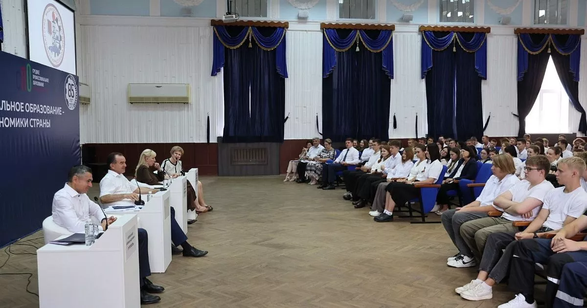 Губернатор Кубани Вениамин Кондратьев встретился с учащимися профессиональных образовательных организаций.