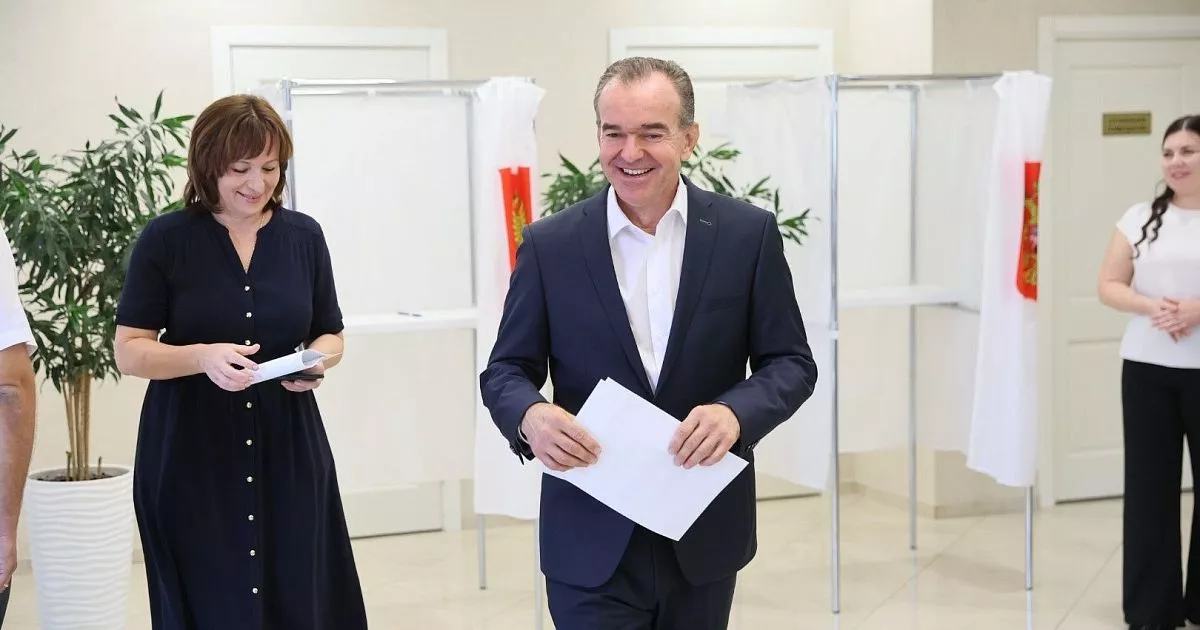 Глава региона вместе с супругой Галиной проголосовал на избирательном участке в станице Динской.