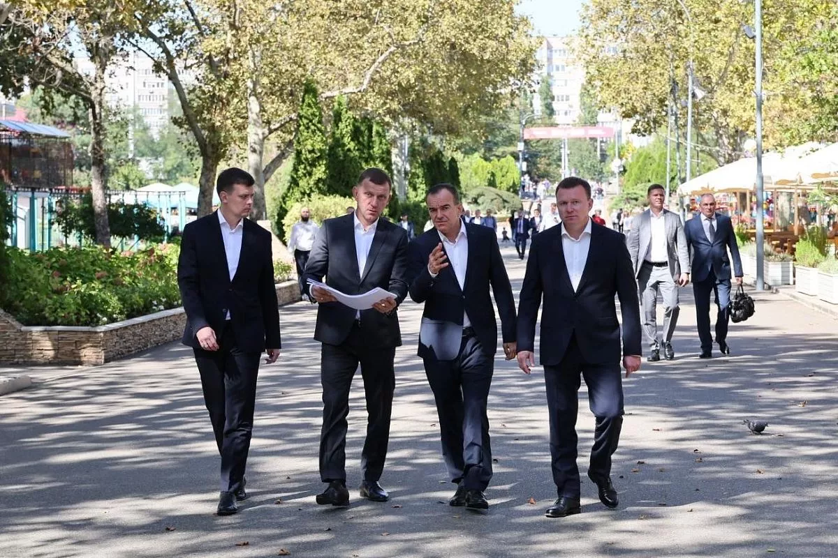 Губернатор Кубани Вениамин Кондратьев осмотрел территорию парка, пообщался с предпринимателями, работающими в зоне общепита. В рабочем выезде также приняли участие заместители губернатора Роман Лузинов и Евгений Пергун, глава города Евгений Наумов.