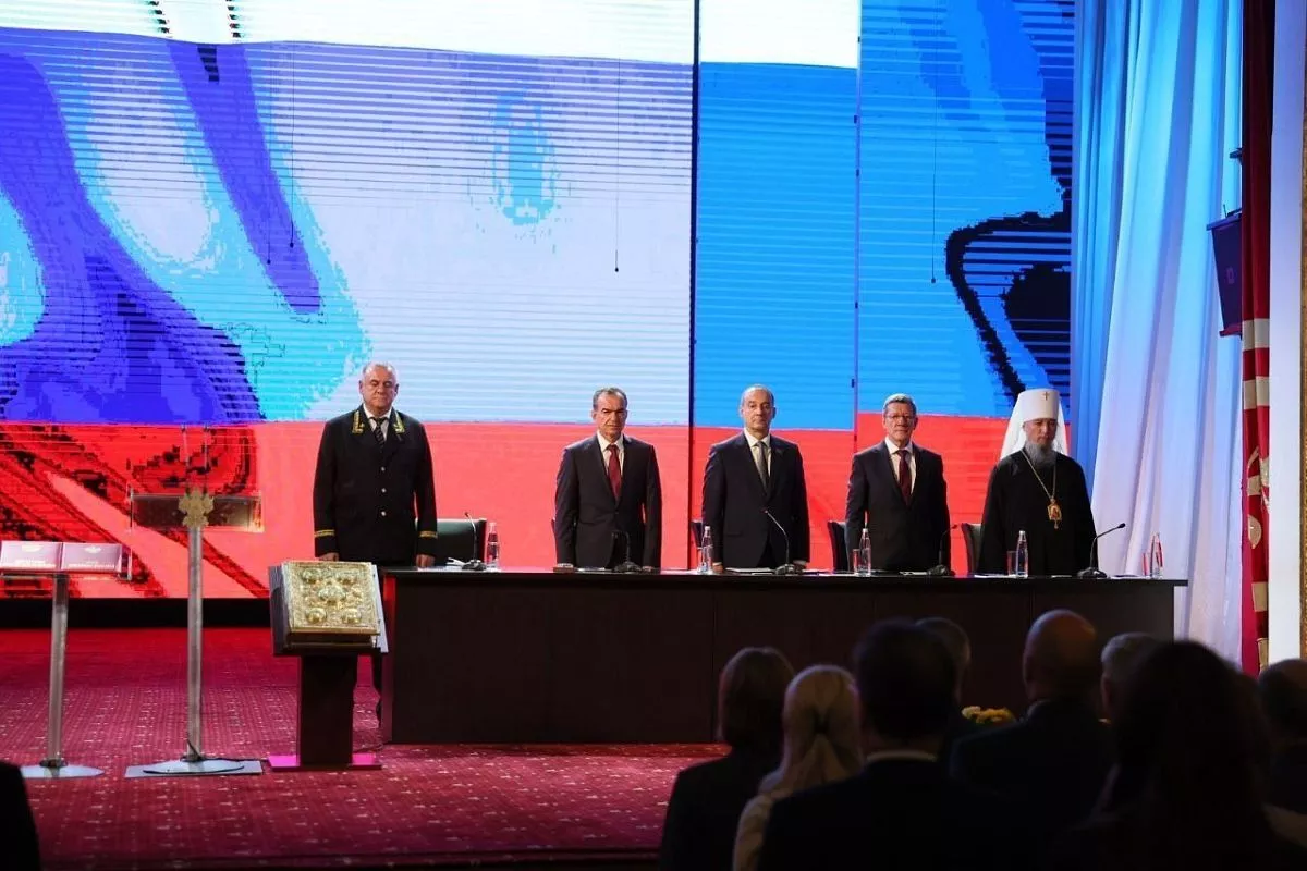 От имени многонационального народа соседней республики со вступлением в должность губернатора Вениамина Кондратьева поздравил и глава Адыгеи. Мурат Кумпилов отметил убедительную победу на выборах, которую обеспечили высокое доверие избирателей и поддержка Президента России.