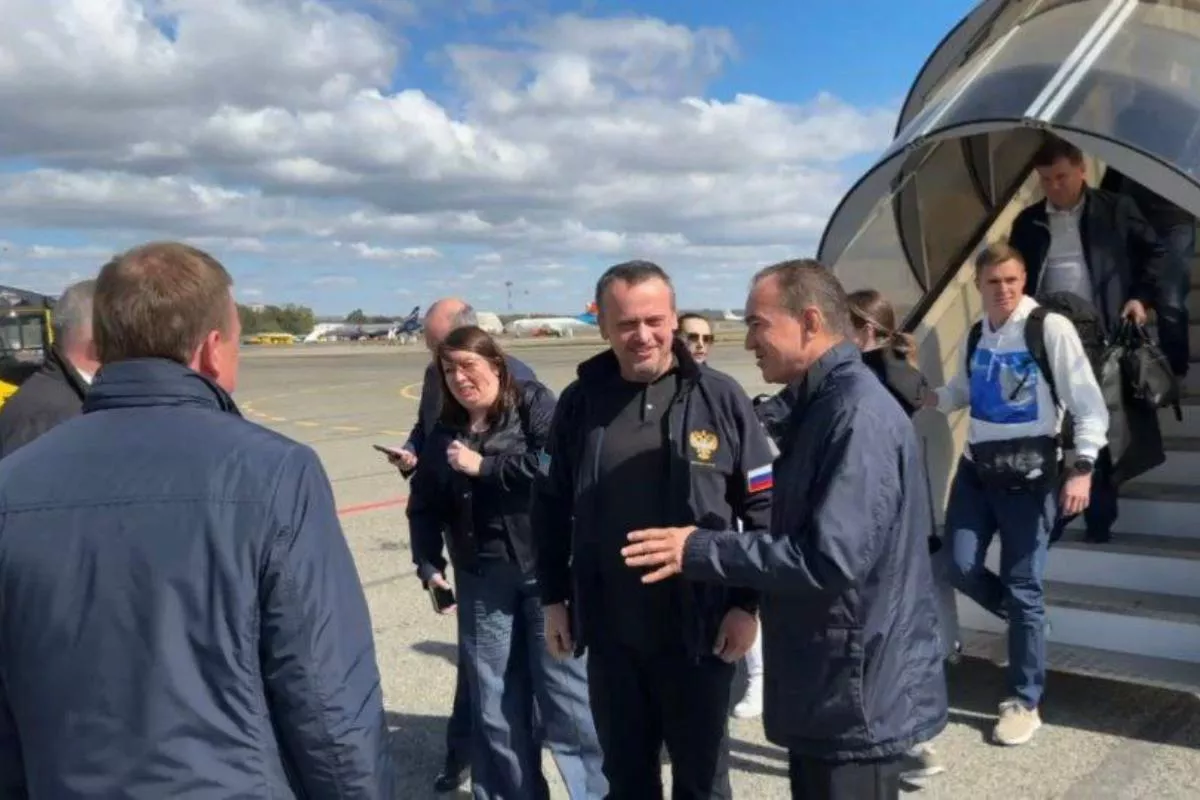 Вместе с главой региона Андрея Никитина также встретил вице-губернатор Кубани Евгений Пергун, сообщает пресс-служба администрации Краснодарского края.