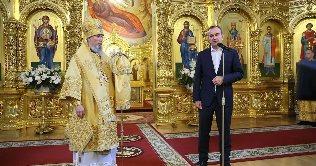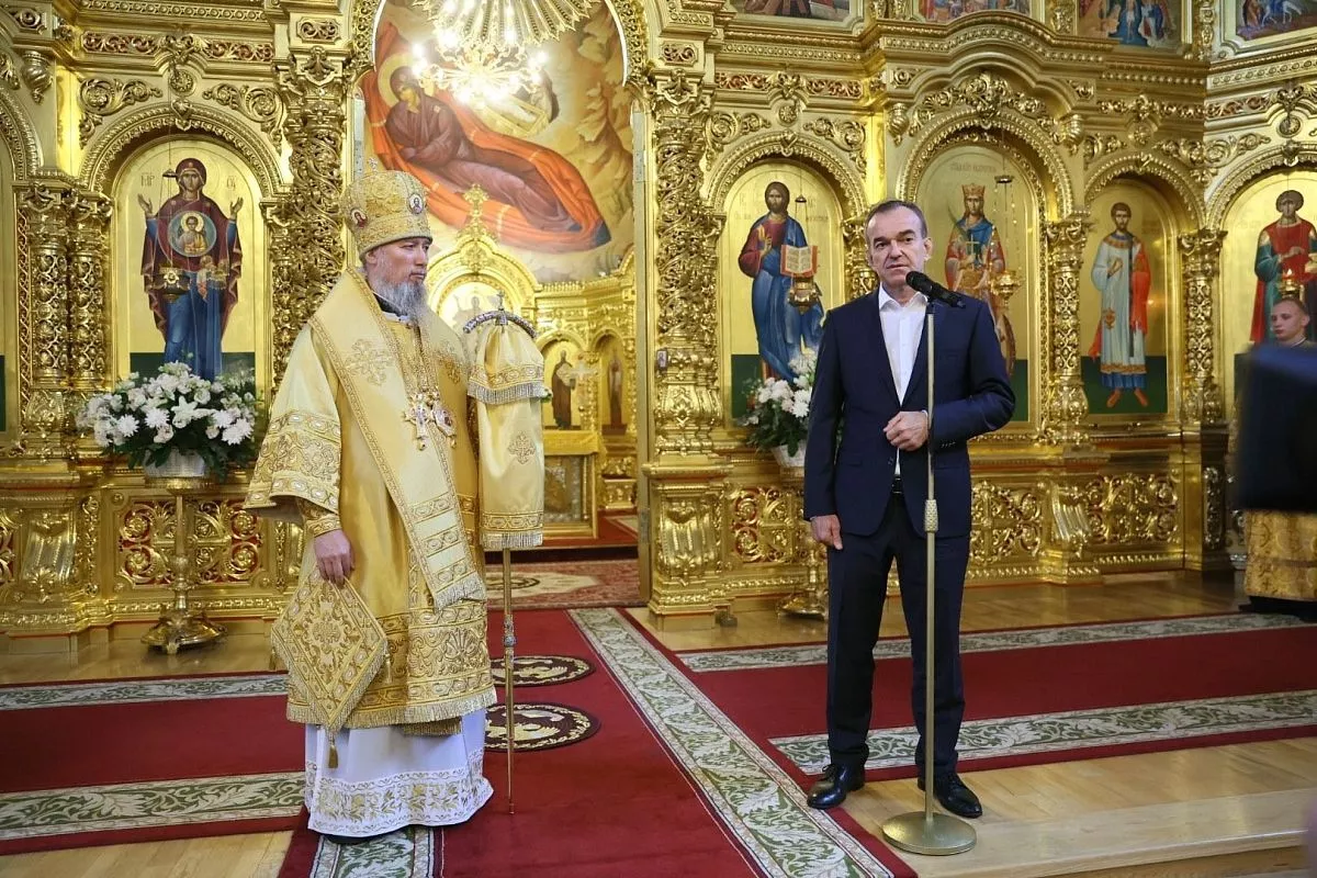Губернатор принял участие в литургии, которую митрополит Василий провел в краснодарском Свято-Екатерининском кафедральном соборе.