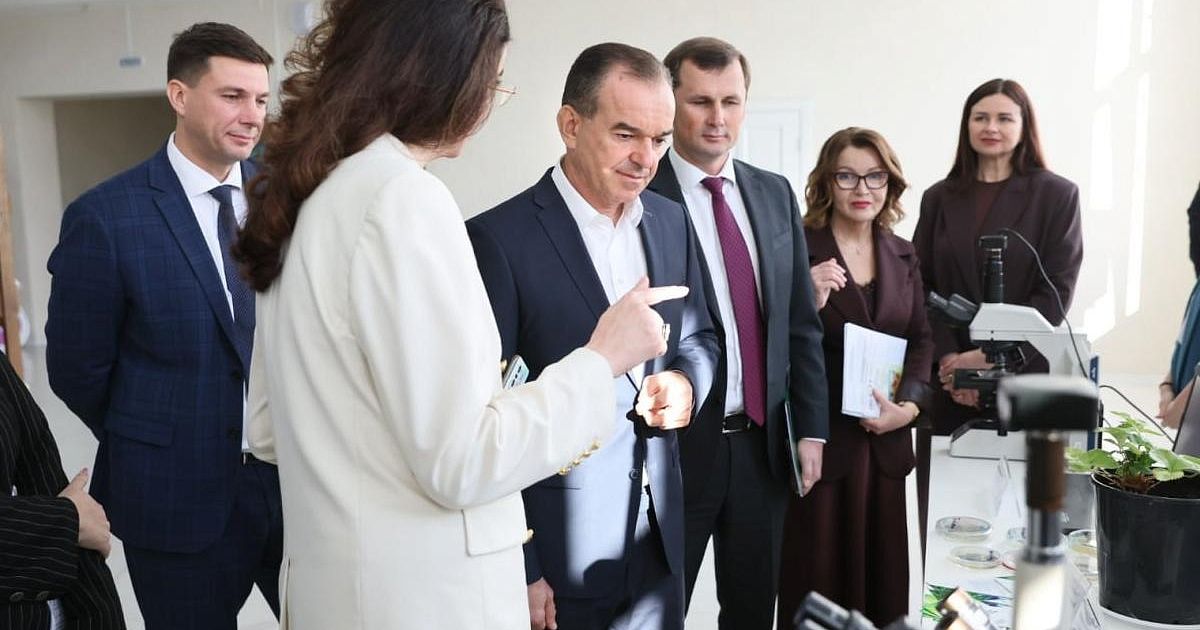 Глава региона осмотрел лаборатории и выставку научных достижений, которую организовали в рамках фестиваля «НАУКА 0+ Кубань», пообщался с сотрудниками учреждения и молодыми учеными.