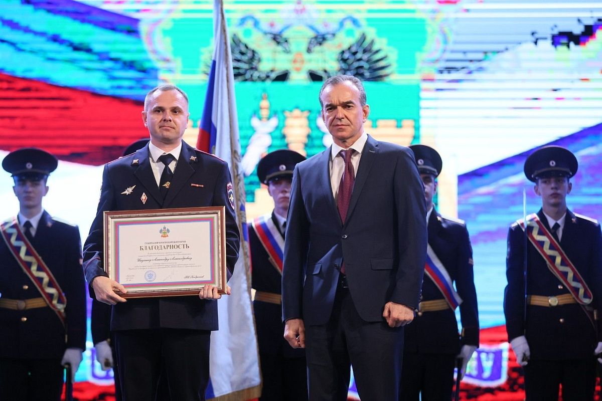 – Ваша нелегкая служба лежит в основе благополучия 6,5 миллионов жителей и 20 миллионов гостей Краснодарского края. В любое время вы обеспечиваете безопасность и общественный порядок в наших городах и районах. Тем самым делаете Кубань привлекательным регионом для инвестиций, местом, где хочется жить. Вы добиваетесь заметных результатов в борьбе с организованной преступностью, нелегальной миграцией, противодействии экстремизму, коррупции, распространению наркотиков. В текущем году уровень преступности в крае снизился на 15 процентов. За этим показателем стоит ваша эффективная работа. В полиции во все времена служили настоящие патриоты, верные долгу и Родине. И сегодня многие из вас не раз были в командировках в зоне СВО. Отдельные слова благодарности ветеранам МВД. Вы храните традиции службы, передаете знания и опыт молодому поколению сотрудников полиции. От имени всей Кубани говорю вам: спасибо за службу, – отметил губернатор Кубани Вениамин Кондратьев.