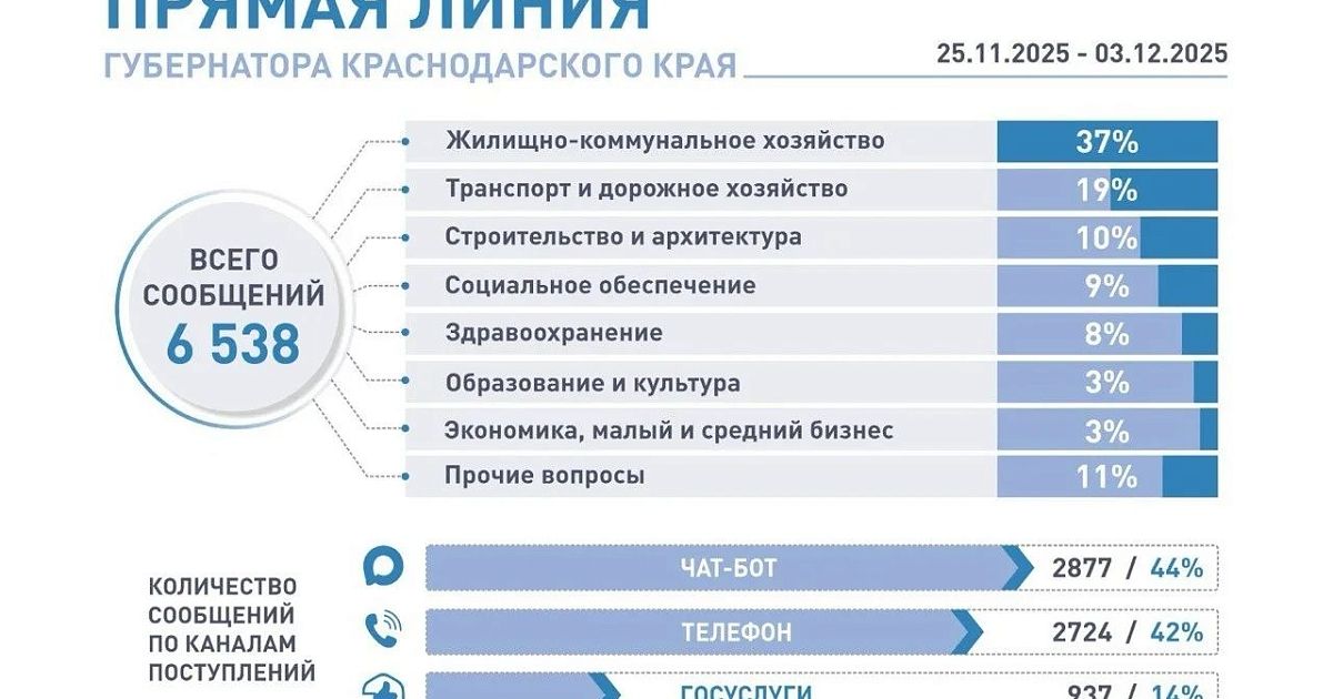 Всего с 25 ноября по 3 декабря поступило свыше 6,5 тысячи обращений.