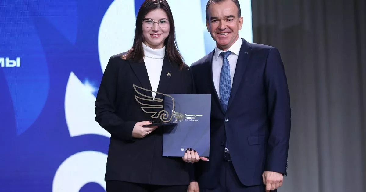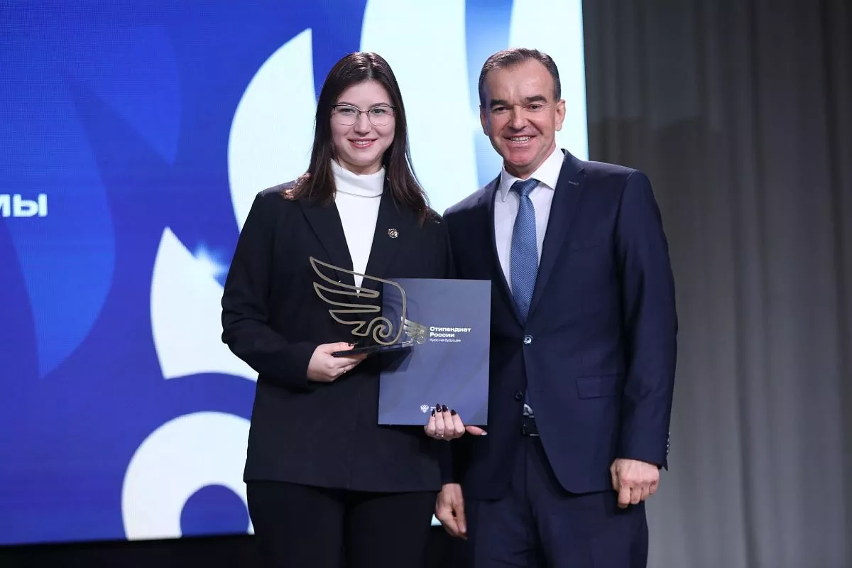 – Особенно приятно, что среди лауреатов 185 студентов кубанских вузов. Это говорит о высоком уровне образования в нашем регионе. Краснодарский край всегда открыт для талантливой молодежи со всей России. Мы стремимся создавать условия для развития вашего потенциала, поддержки научных разработок и внедрения новых решений в экономику. Поэтому ежегодно более 3 тысяч студентов получают краевую стипендию. А Кубанский научный фонд за шесть лет работы поддержал 271 проект на почти 1 миллиард рублей. Убежден, что ваш ум, идеи, энергия и смелость помогут решить масштабные задачи по укреплению технологического лидерства в разных отраслях, – подчеркнул Вениамин Кондратьев.