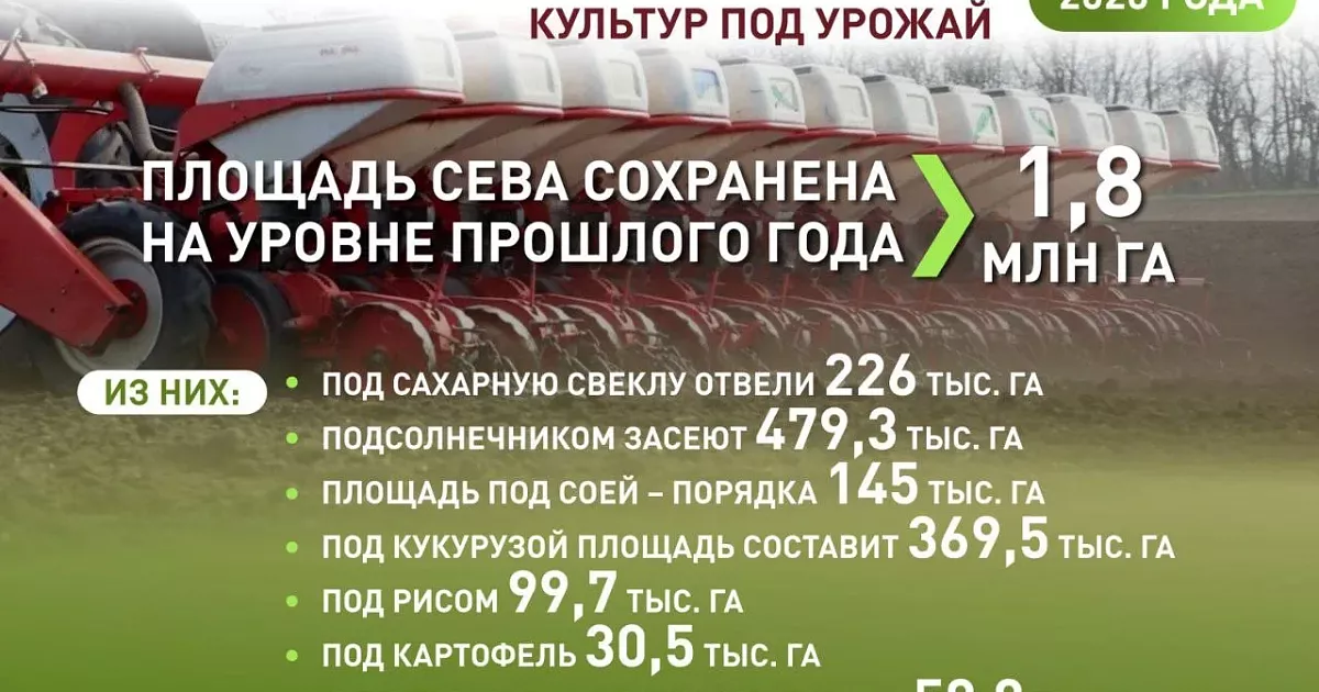 В 2026 году под яровые культуры в регионе отвели почти 1,8 миллиона гектаров.