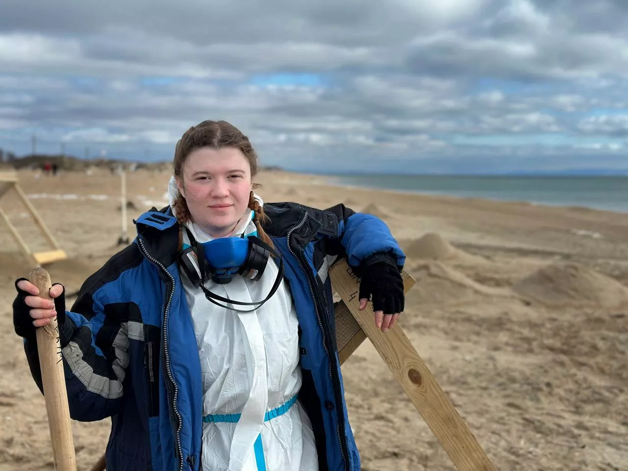 Олеся Ничик - студентка Института географии, геологии, туризма и сервиса Кубанского государственного университета. С февраля она старается каждую неделю приезжать на Бугазскую косу, потому что руки здесь никогда не бывают лишними.