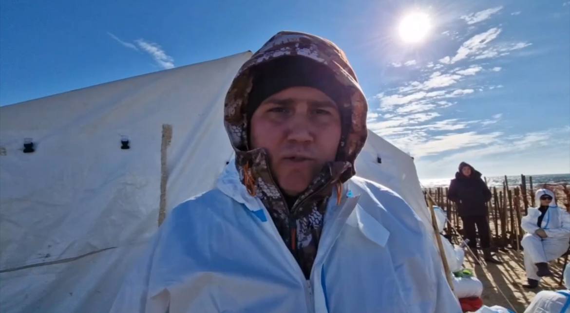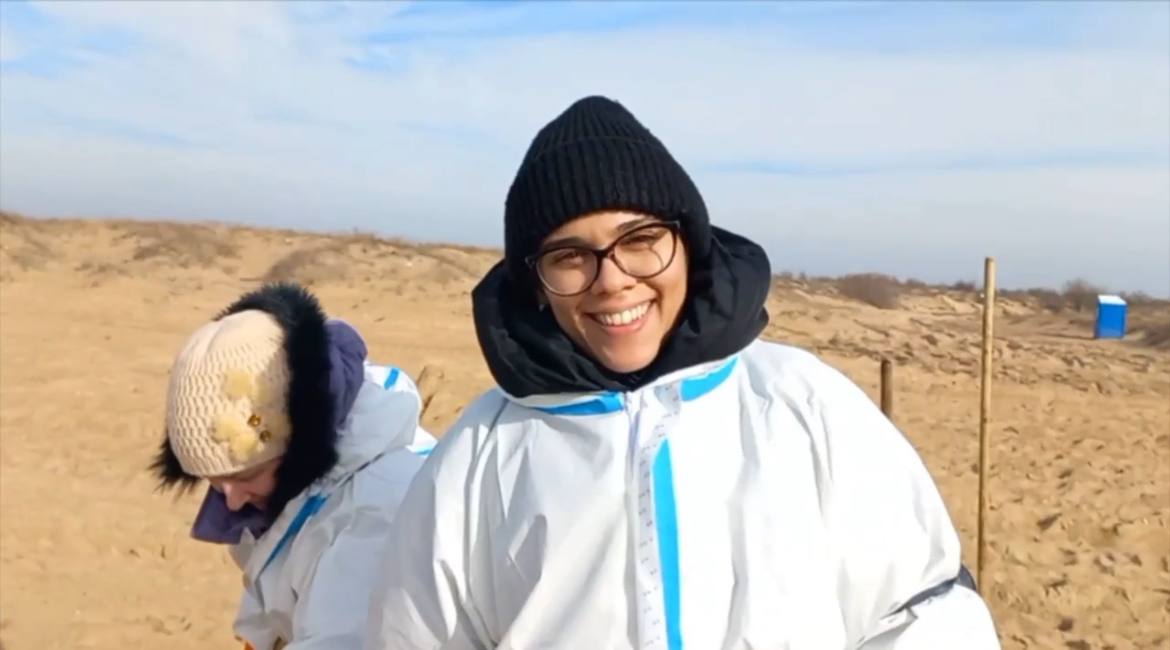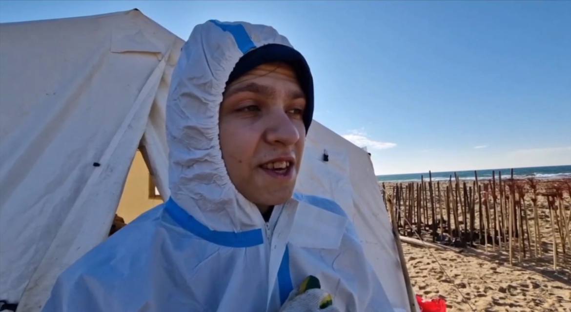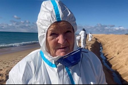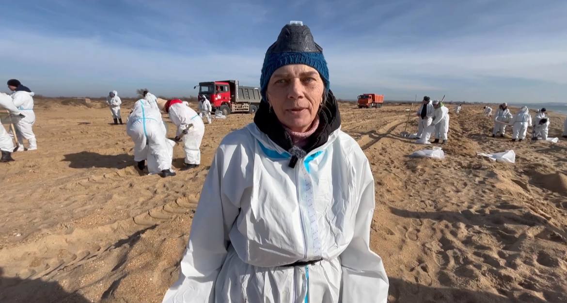 – Мы приехали дружной командой спасать море. Просеиваем песок через сито, через лопаты с сетками. Потом собираем этот весь мелкий и чуть крупный мазут в специальные мешки. Нам выдали специальную униформу. Работы много, но вместе мы сила!
